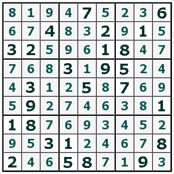 Материалы данного сайта являются объектом авторского права. Сгенерированные на сайте Судоку можно использовать только непосредственно для их личного разгадывания. Перепечатка, копирование и публикация Судоку - не допускается!