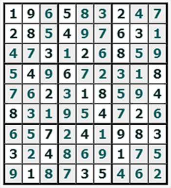 Материалы данного сайта являются объектом авторского права. Сгенерированные на сайте Судоку можно использовать только непосредственно для их личного разгадывания. Перепечатка, копирование и публикация Судоку - не допускается!