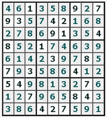 Материалы данного сайта являются объектом авторского права. Сгенерированные на сайте Судоку можно использовать только непосредственно для их личного разгадывания. Перепечатка, копирование и публикация Судоку - не допускается!