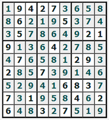 Материалы данного сайта являются объектом авторского права. Сгенерированные на сайте Судоку можно использовать только непосредственно для их личного разгадывания. Перепечатка, копирование и публикация Судоку - не допускается!