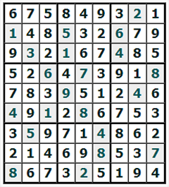 Материалы данного сайта являются объектом авторского права. Сгенерированные на сайте Судоку можно использовать только непосредственно для их личного разгадывания. Перепечатка, копирование и публикация Судоку - не допускается!